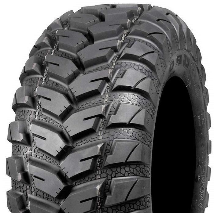 Not for Highway Service (NHS) - NOT road legal. E-mark: E4-75R-0009200 • Designed for peak performance on pavement, hard pack and loose-on-hard terrain • Directional pattern with tight center band provides stability off-road and comfort on paved surfaces • Radial construction improves steering control, reduces rolling resistance and saves fuel • Works amazingly well, especially on hill sides and rocks • Very good wear on hard surfaces Tyres come unsquashed making fitting them a whole lot quicker! Brand: Duro Tread Pattern: DI2037 Frontier Load/Speed Index: 55N Max Load: 218kg Operating Pressure: 7psi OD: 668mm Width: 275mm Aspect Ratio: Tread Depth: 17mm Max Speed: 140km/h Fits rim width: 9.00" (178mm) Manufacturer's part no.: Keywords: Duro DI2037, Duro DI-2037, Frontier Alternative imperial tyre size nomenclature: Size on tyre: AT26X11R12 26/11.00-12 | 26/1100-12 | 26/11-12 26x11.00-12 | 26x1100-12 | 26x11-12 26x11.00x12 | 26x1100x12 | 26x11x12 26/11.00R12 | 26/1100R12 | 26/11R12 26x11.00R12 | 26x1100R12 | 26x11R12 ETRTO Tyre Size (European): Size on tyre: Quicksearch size: 261112 | 26110012 | Radial